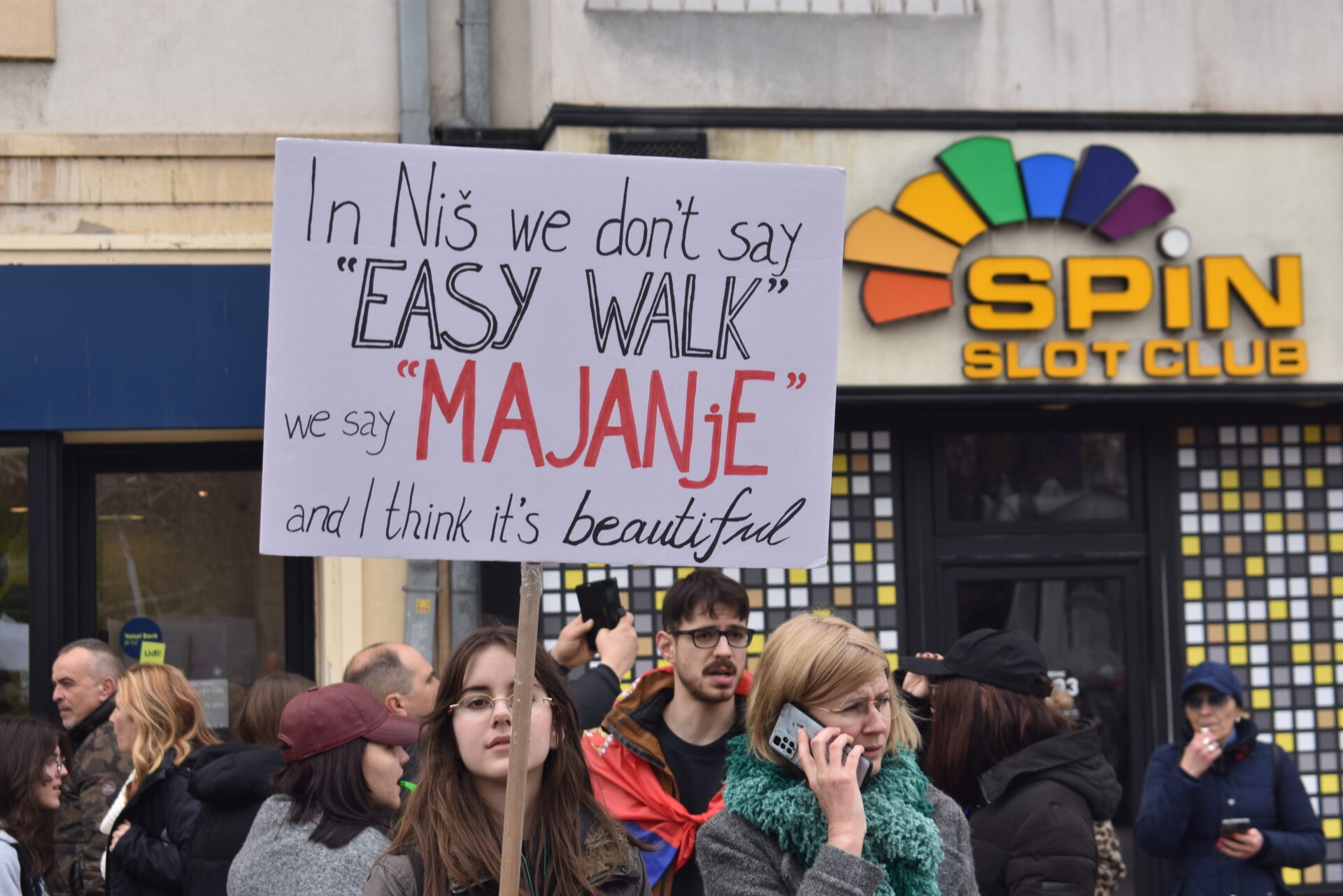 Dobro nam, bre, došli – poručuju Nišlije. Masa iz kolone kliče „Jug je ustao“, „Slobodan jug“ i „Student je stigao na jug“. „Pumpaju“ i klinci i matorci.