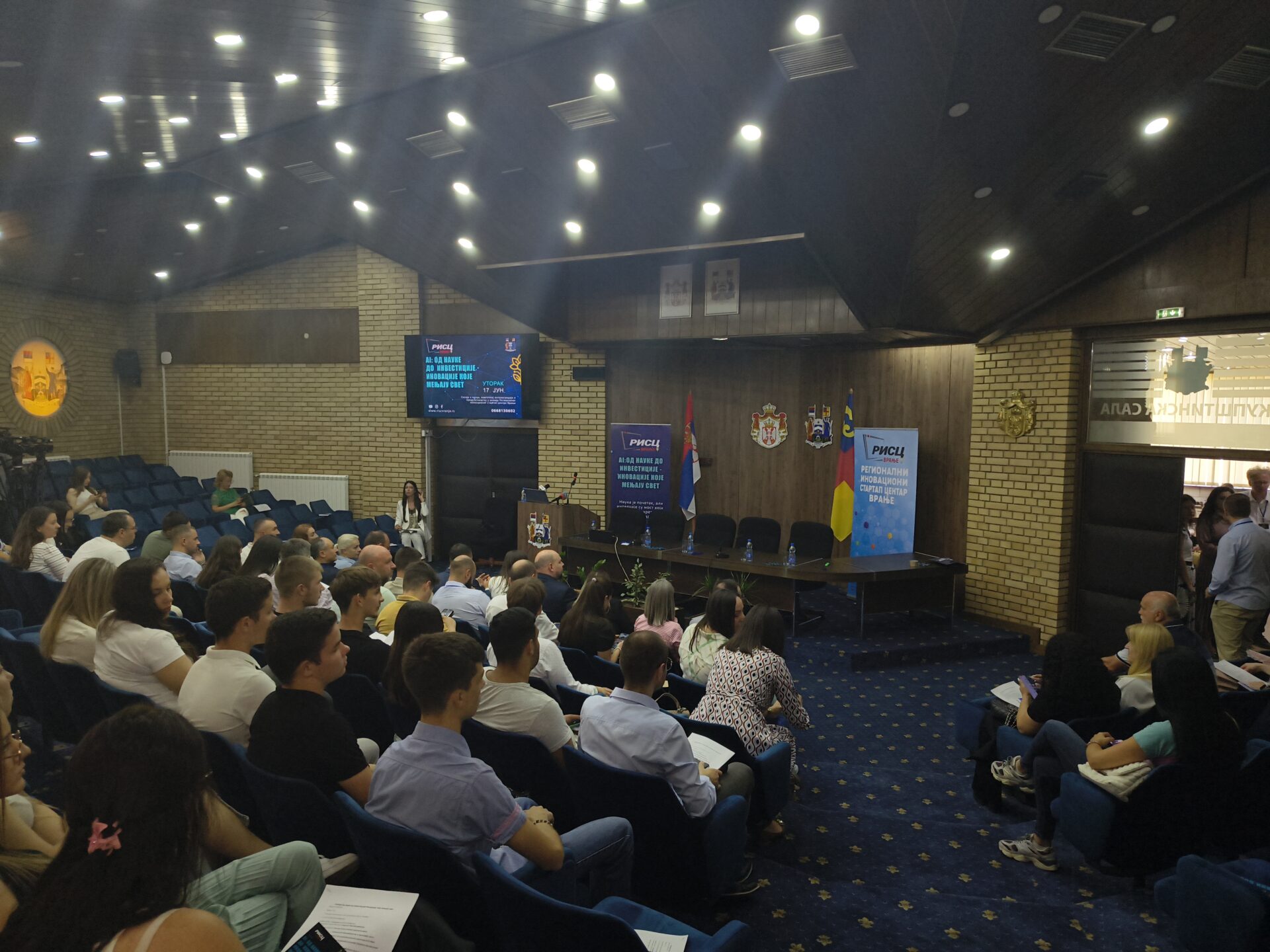 VRANJE – U velikoj sali Skupštine grada Vranja, danas je održana panel-diskusija „AI: od nauke do investicije – inovacije koje menjaju svet“, u organizaciji Regionalnog informativnog startap centra (RISC). Fokus razgovora bio je na povezivanju nauke, tehnologije i privrede, ali i na lokalnim primerima uspešnog korišćenja veštačke inteligencije. Većina prisutnih bili su mladi Vranjanci i Vranjanke.