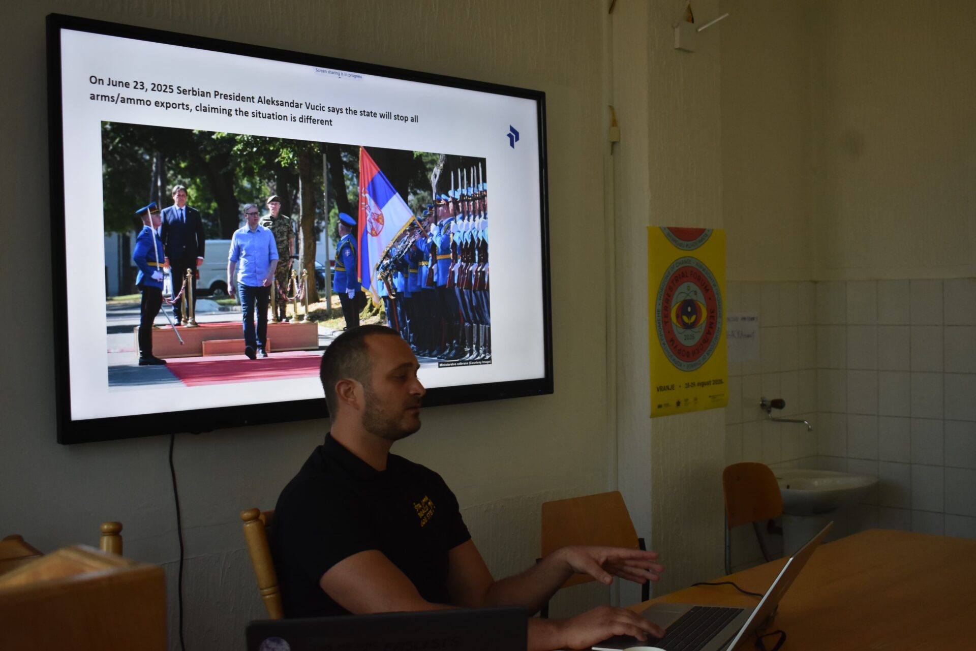 „Srbija je u šest letova u februaru, martu i maju 2024. godine u Izrael izvezla veliku količinu oružja i municije vredne više desetina miliona evra. Petnaest poletanja zabeleženo je 2023. godine iz Beograda ili Niša, a krajnje odredište im je bila vazduhoplovna vojna baza Nevatim, smeštena nedaleko od grada Berševe u jugoistočnom Izraelu. Prema statistici koju preko 10 meseci sakuplja Haaretz, Srbija je u vrhu liste zemalja iz koji lete izraelski vojni avioni“ navodi se u istraživanju BIRN-a o kojem se govorilo na predavanju.